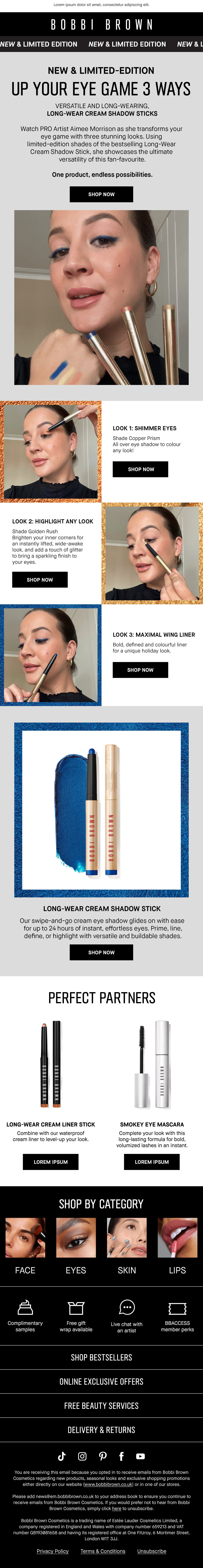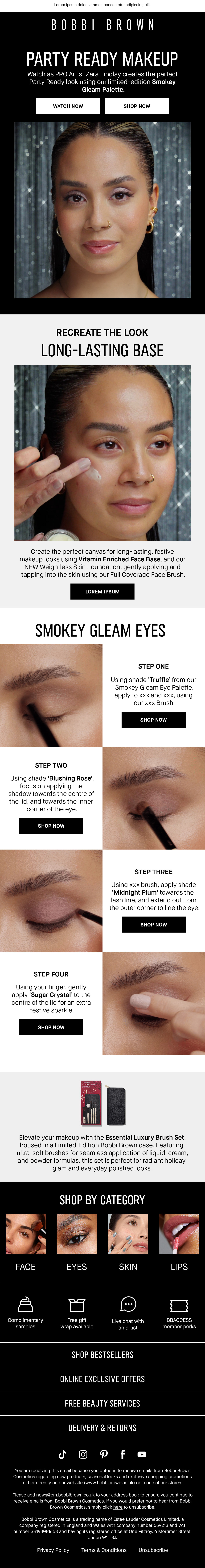These are Bobbi Brown newsletters sent during the festive period, showcasing the brand's make up artists with educational tips and how to's.