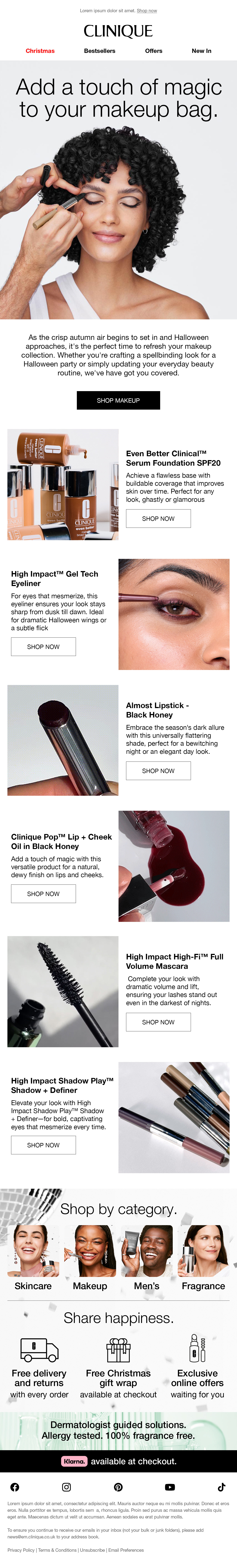 These emails were designed for Clinique to be sent during the festive sale period, liaising with the branding team. Using their clean branding, these were created with accessibility at the forefront, using HTML