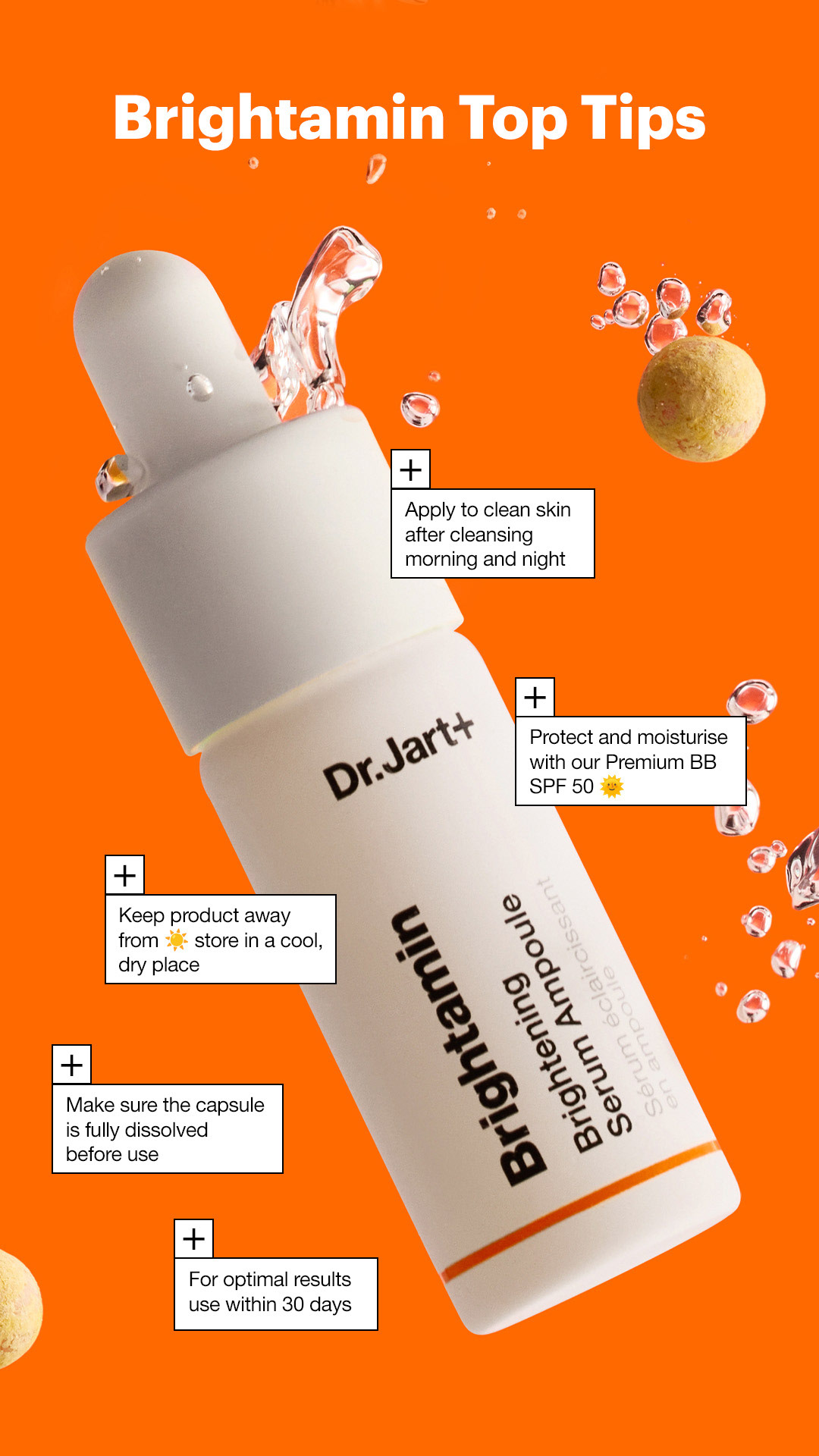 Social campaign work for Dr.Jart+, creating reusable online content to promote the Brightamin range