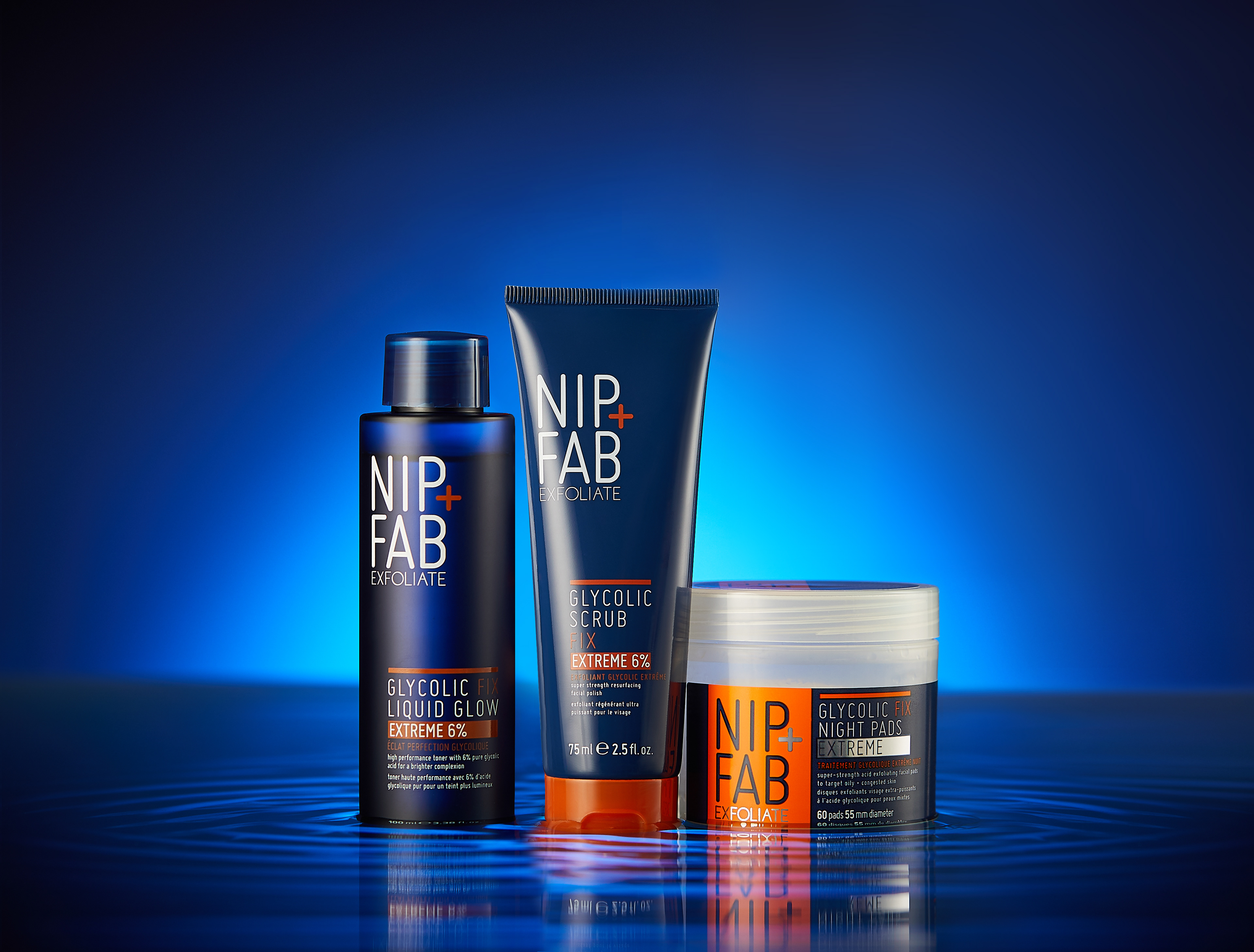 It was important to portray intense hydration with this shoot. This range already has a cult following, so I created something impactful and different from the usual colourful Nip+Fab visuals without compromising the brand identity.
